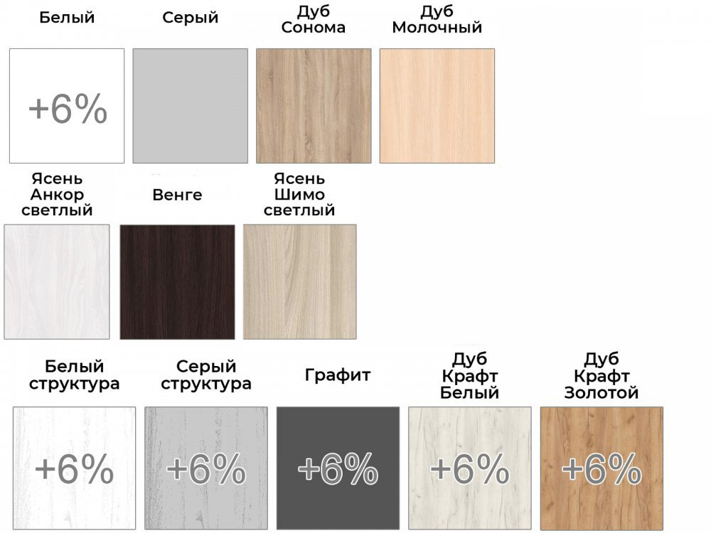- Дуб крафт белый (+6% к стоимости)