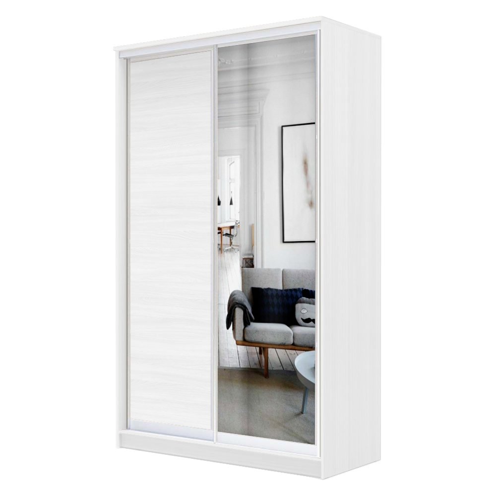 - Шкаф-купе Хит 2200 ЛДСП с зеркалом Белая структура