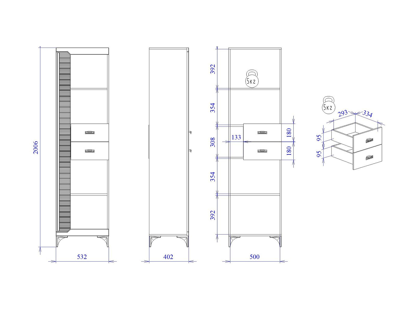 Макс.нагрузка на ящик/полку (кг): 5