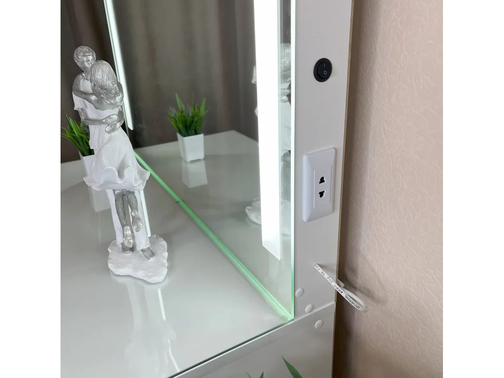 - Встроенные выключатель и розетка на торце зеркала справа. Питание 220W. Сетевой шнур с вилкой 2 метра.