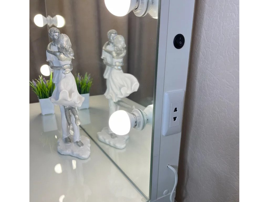 - Встроенные выключатель и розетка на торце зеркала справа.