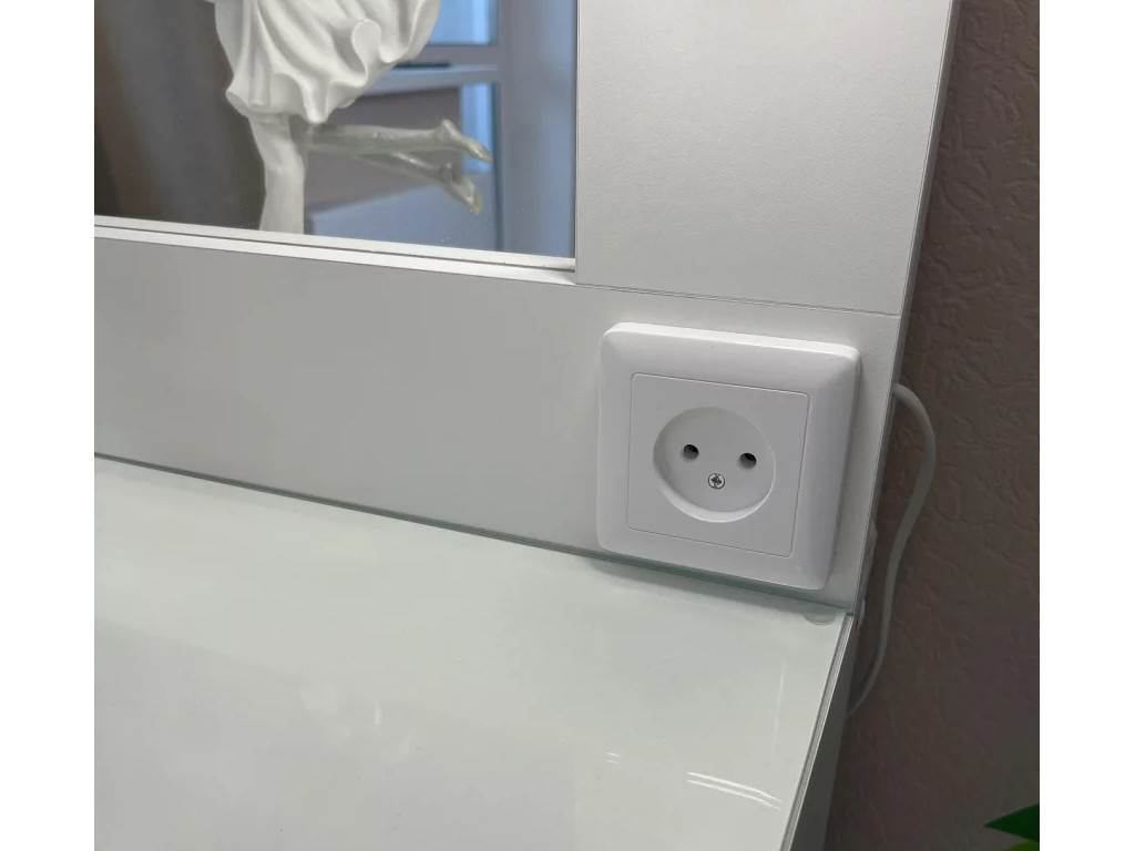 - Встроенные выключатель и розетка на фасаде рамы. Питание 220W. Сетевой шнур с вилкой 2 метра (справа).