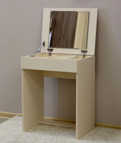 Столешница имеет зеркало с внутренней стороны.