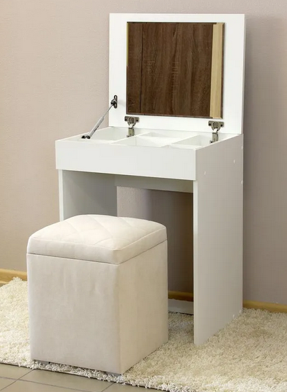 Столешница имеет зеркало с внутренней стороны.