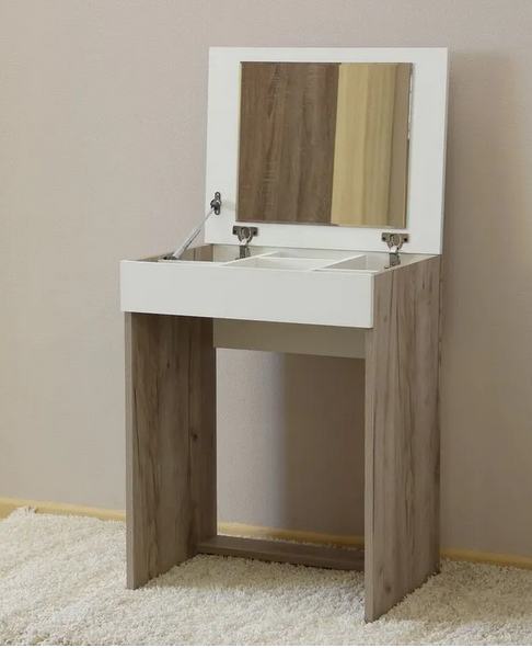 Столешница имеет зеркало с внутренней стороны.